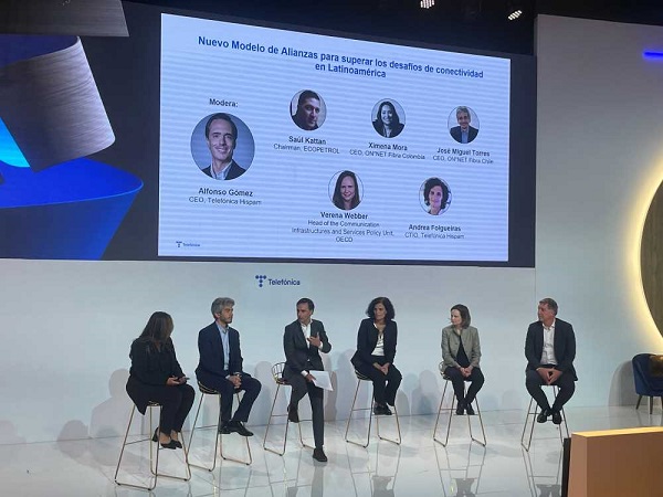 (americasistemas.com.pe. Lima, Perú – 08 de marzo 2023) Durante el panel “Nuevo Modelo de Alianzas para superar los desafíos de conectividad en Latinoamérica”, José Miguel Torres, CEO de ON*NET Fibra Chile; Ximena Mora Méndez, CEO de ON*NET Fibra Colombia; Verena Weber, Head of Communication Infrastructures and Services Policy Unit de la OECD; Saúl Kattan, Consejero de la Presidencia en Colombia y Presidente de ECOPETROL; junto a Alfonso Gómez Palacio, CEO de Telefónica Hispam, Andrea Folgueiras, CTIO de Telefónica Hispam y José Juan Haro, Director de Negocio Mayorista y Asuntos Públicos de Telefónica Hispam, destacaron los retos que la región tiene en términos de conectividad. Además, resaltaron la importancia de contar con políticas públicas adecuadas para replicar esquemas de compartición de infraestructura que faciliten el camino de nuevos modelos de negocio para avanzar de forma rápida y efectiva en el cierre de la brecha digital en la región, y con ello impulsar el desarrollo de habilidades y capacidades digitales en la población para aprovechar los beneficios del acceso a internet y la tecnología.