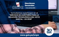 Informamos que la Oficina Nacional de Procesos Electorales (ONPE) ha lanzado una convocatoria que abre una interesante oportunidad para las firmas especializadas en auditoría tecnológica. Se trata del Servicio de Auditoría para la Solución Tecnológica del Voto Digital – EG 2026, cuyo proceso se encuentra disponible en la plataforma SEACE bajo el requerimiento N.° 1382. Los interesados podrán presentar sus consultas y observaciones técnicas hasta el 4 de setiembre de 2025. Con esta iniciativa, la ONPE ratifica su apuesta por la transparencia y la participación en el desarrollo del voto electrónico en nuestro país.