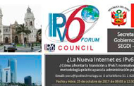 Cómo afrontar el desafío de migrar toda una plataforma hacia IPv6, la normatividad y metodología práctica para la Administración Pública se darán a conocer en esta cita donde el objetivo es dar a conocer notables casos de éxito y mejores prácticas para la planeación, despliegue, pruebas y monitorización de IPv6; BYOD en las redes, conectividad, seguridad, infraestructuras de plataformas TI y aplicaciones; junto con las disposiciones gubernamentales y productos y servicios disponibles IPv6 Ready. En caso desee asistir a esta cita sin costo alguno, brindamos las coordenadas: peru@ipv6technology.com ó al teléfono 6286516.