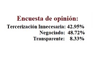 En nuestra edición anterior, quisimos auscultar el sentir de nuestros lectores frente al controversial proyecto que tiene Sunat de implementar contra viento y marea los Operadores de Servicios Electrónicos con la finalidad de validar los comprobantes de pago. Cabe señalar que el 43.33% señala de que es una tercerización innecesaria y que la Sunat debería hacerlo, mientras que el 48%, percibe un proyecto encubierto para favorecer intereses particulares, en buen romance un negociado, sólo el 8.67% piensa que es un proyecto transparente. Así están las cosas amigos lectores. Mientras tanto en los próximos días el tribunal Constitucional emitirá su sentencia sobre la continuidad o no de este polémico proyecto.
